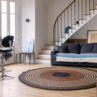 Tapis en raphia rond beige, ocre et noir – 220 cm