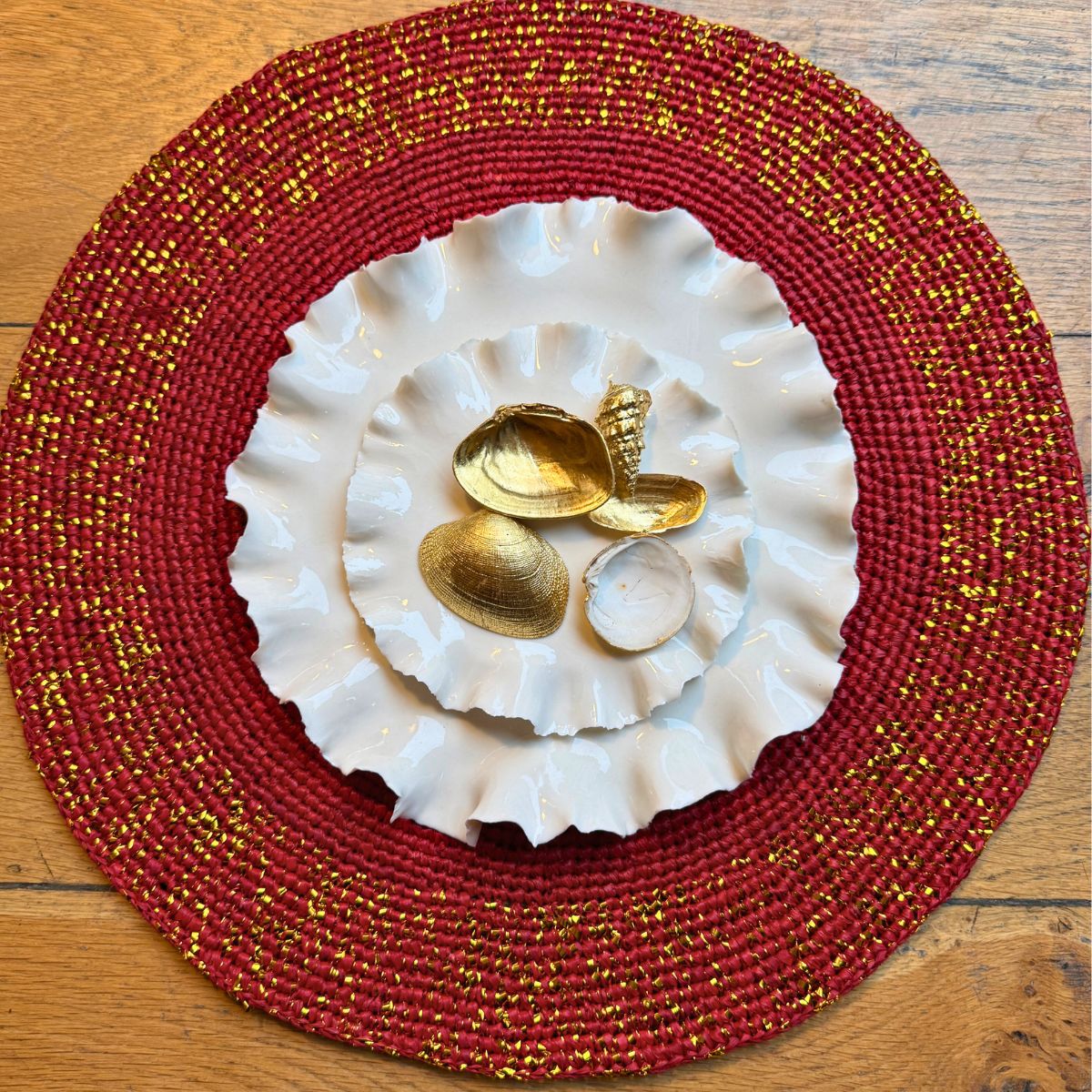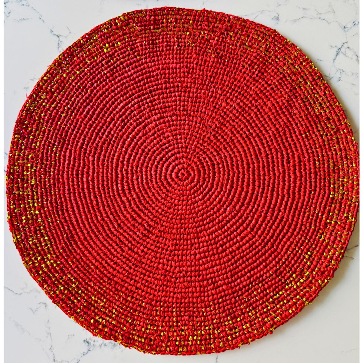 A l'unité - set de table rond en raphia rouge avec fil doré