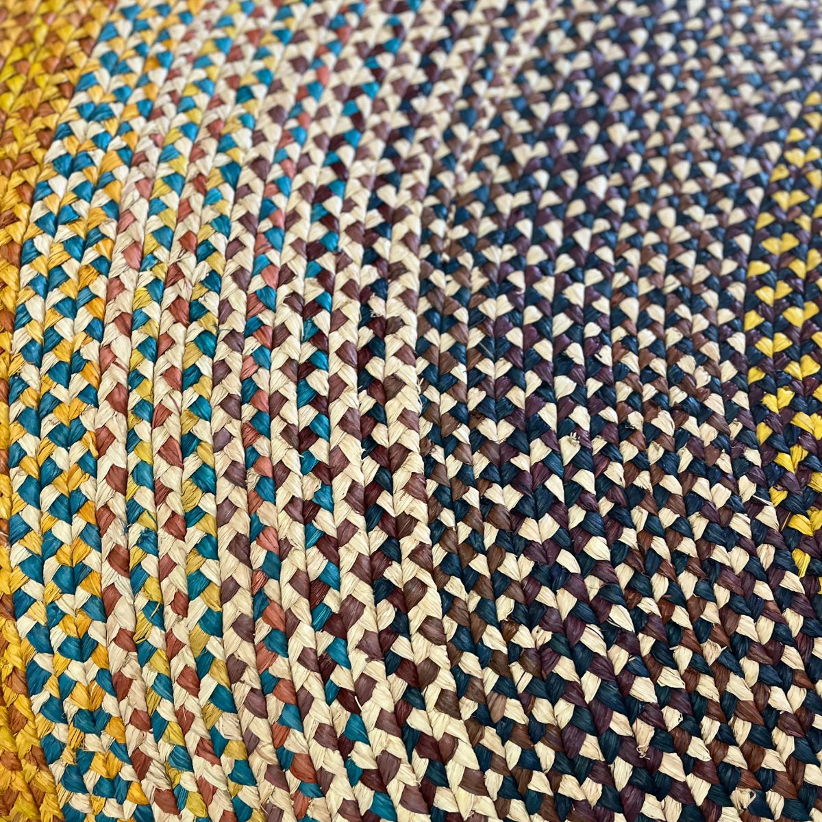Nos tapis sont tressés à la main en raphia naturel, une fibre végétale écologique et durable récoltée à Madagascar.