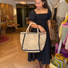 Cabas Abril en raphia naturel ajouré grand modèle - bordures noires