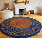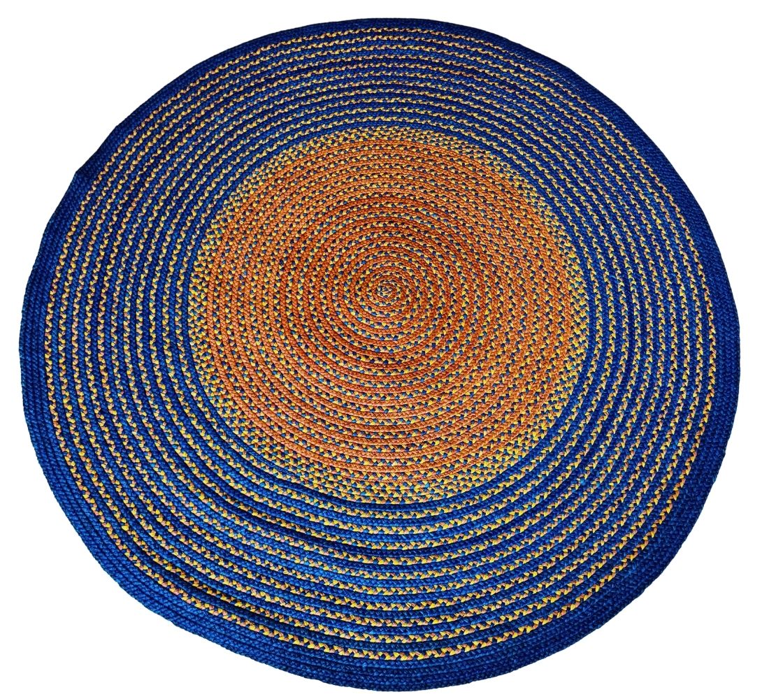 Tapis en raphia rond bleu et orange clair - 200 cm