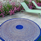 Tapis en raphia rond naturel et bleu marine – 170 cm