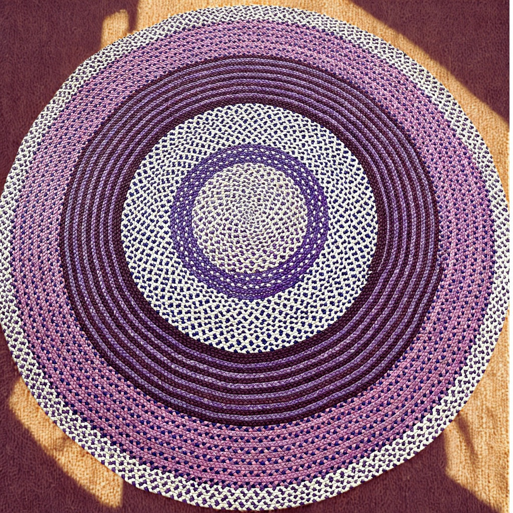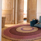 Tapis en raphia rond naturel, bleu, rose, parme et violet – 200 cm