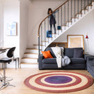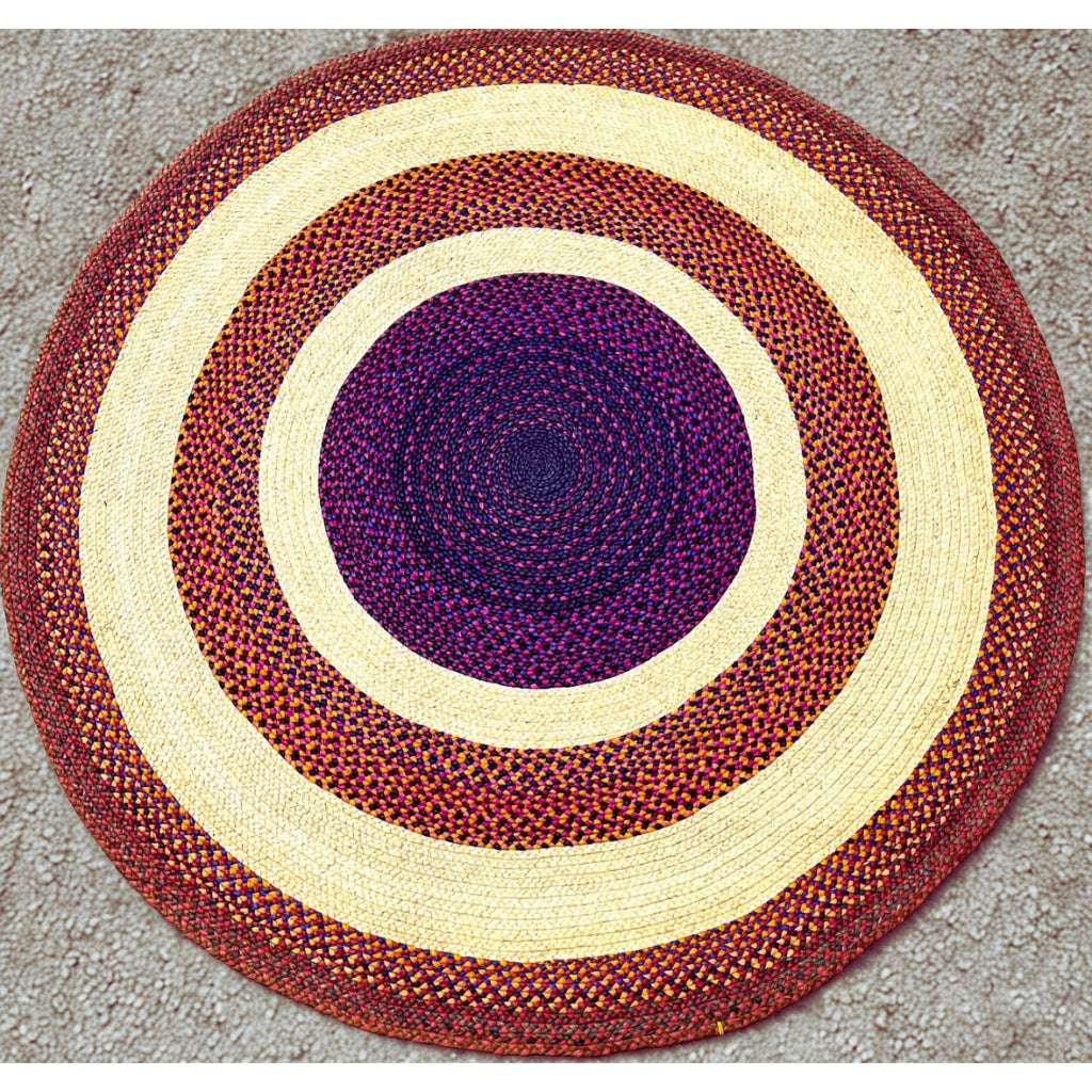 Tapis en raphia rond naturel, rose, jaune et violet – 200 cm