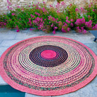 Tapis en raphia rond rose clair, rose foncé, noir et violet – 200 cm