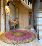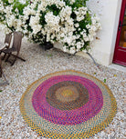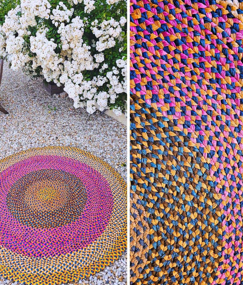 Tapis en raphia rond rose, jaune, brun et naturel – 170 cm