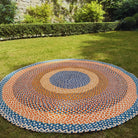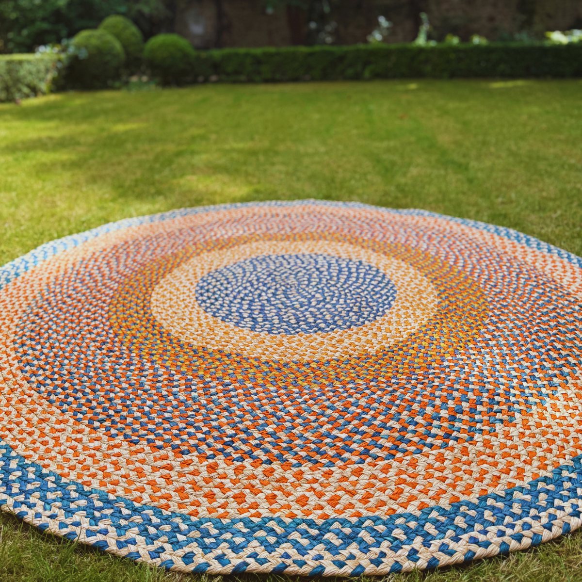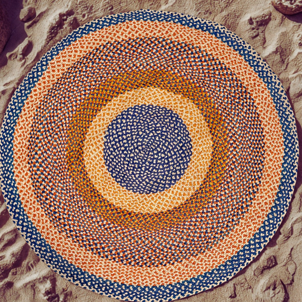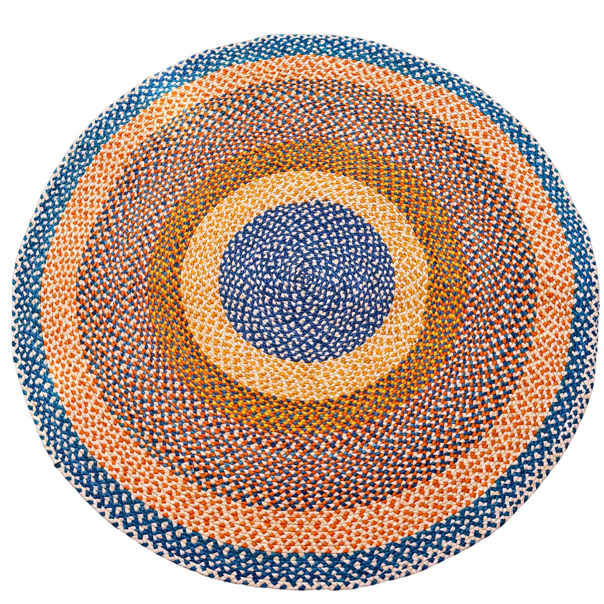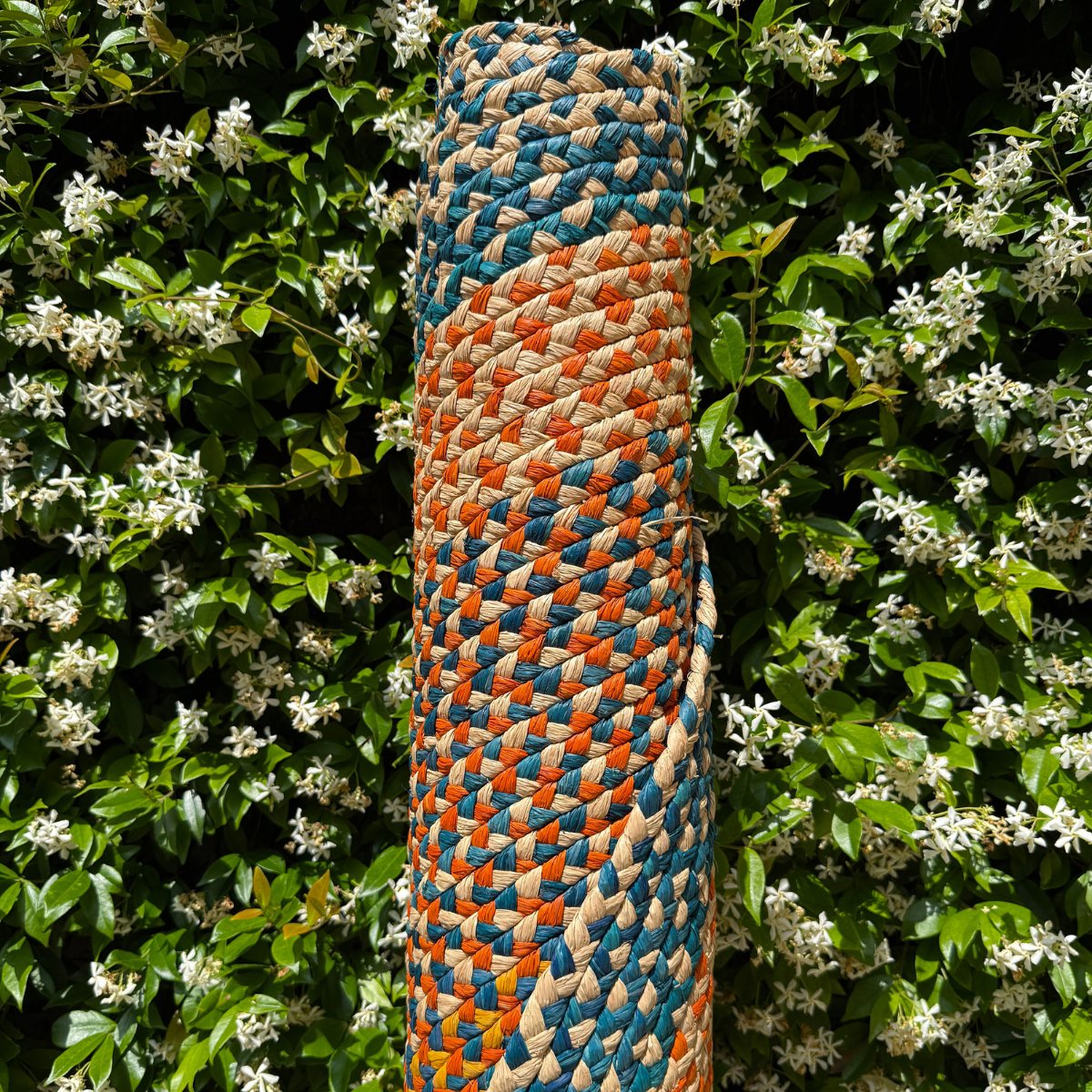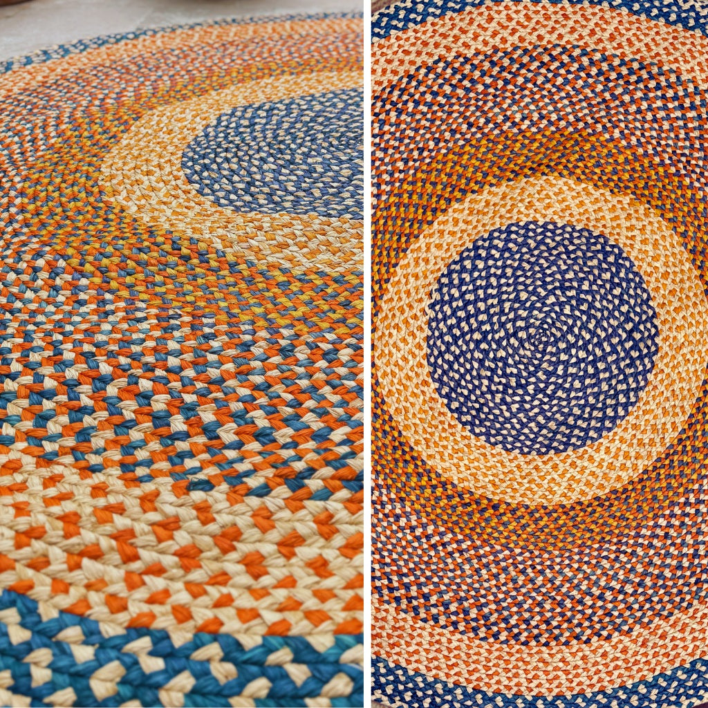Tapis en raphia naturel, bleu et orange – 200 cm