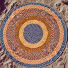 Tapis rond de diamètre 200 cm en raphia, tressé à la main par Claudia de l'association Rouge Beauté à Madagascar. Ce modèle mêle des coloris doux et apaisants de raphia naturel, d'ocre et d'orange pâle et de bleu. Du relief et de la douceur. Chaque tapis est unique! Chaque artisane imagine son tapis et les couleurs qui le composeront. Elle réalise elle-même la teinte du raphia. Une fois le raphia séché, elle créé une longue tresse, qu’elle poursuit en ajoutant des brins de raphia et en enroulant cette tresse sur elle-même au fur et à mesure. C’est pourquoi les tapis sont ronds. Il faut près de 3 semaines pour réaliser un tapis de 2 mètres de diamètre.
