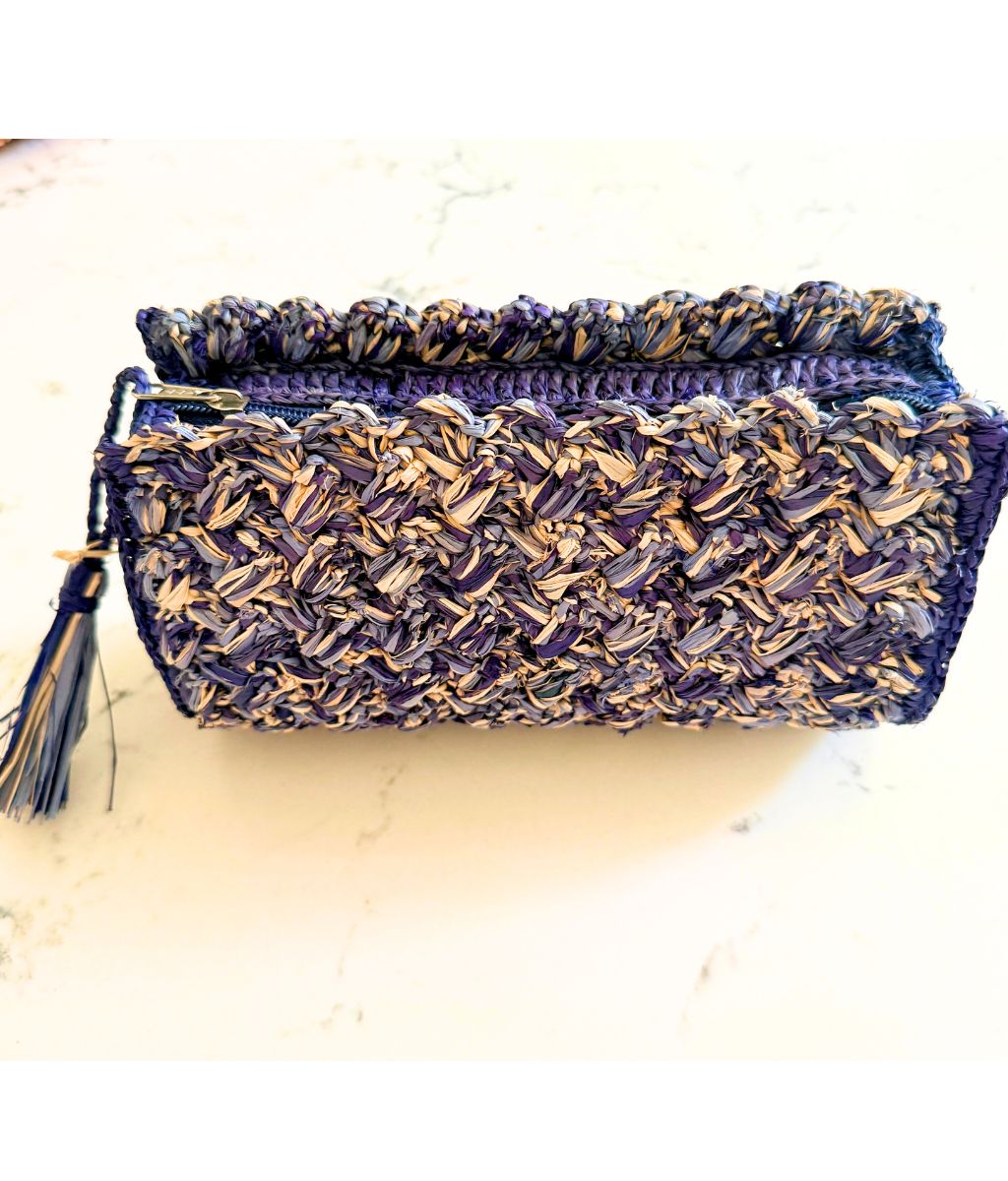 Set of 4 x Natural & Blue Raffia Round Placemats