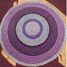 Round rug with a diameter of 200 cm in raffia, hand-woven by Soazy from the Rouge Beauté association. A very soft model with its natural raffia tones, and shades of blue, pink, parma and purple. Each rug is unique! Each craftswoman imagines her rug and the colors that will compose it. She herself makes the shade of the raffia. Once the raffia is dry, she creates a long braid, which she continues by adding strands of raffia and wrapping this braid on itself as she goes. That's why rugs are round. It takes about 3 weeks to make a 2-meter diameter carpet.