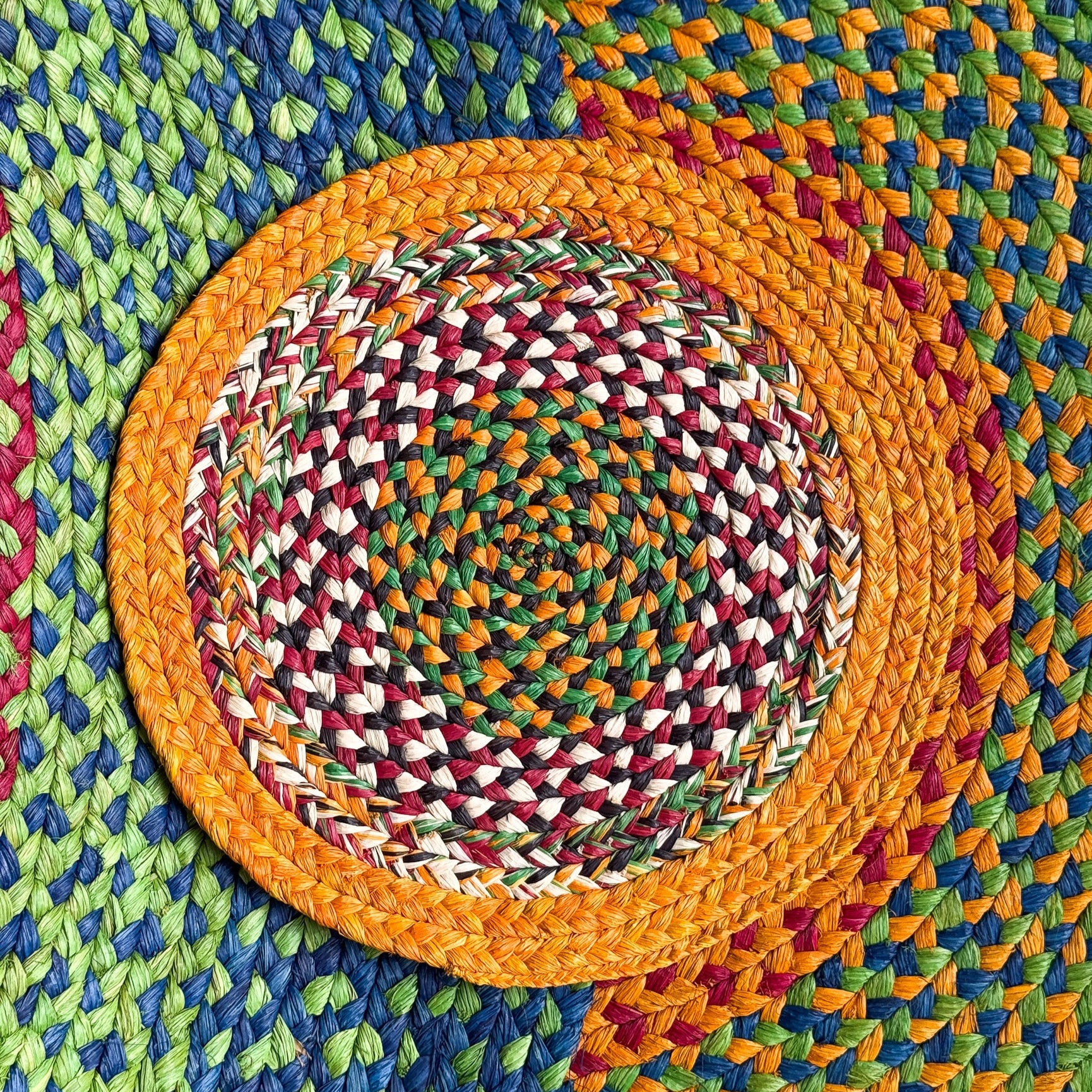 Set of 6 x round placemats in natural raffia with emerald green border - Elena