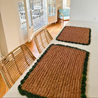 Set of 6 x round raffia placemats with green borders