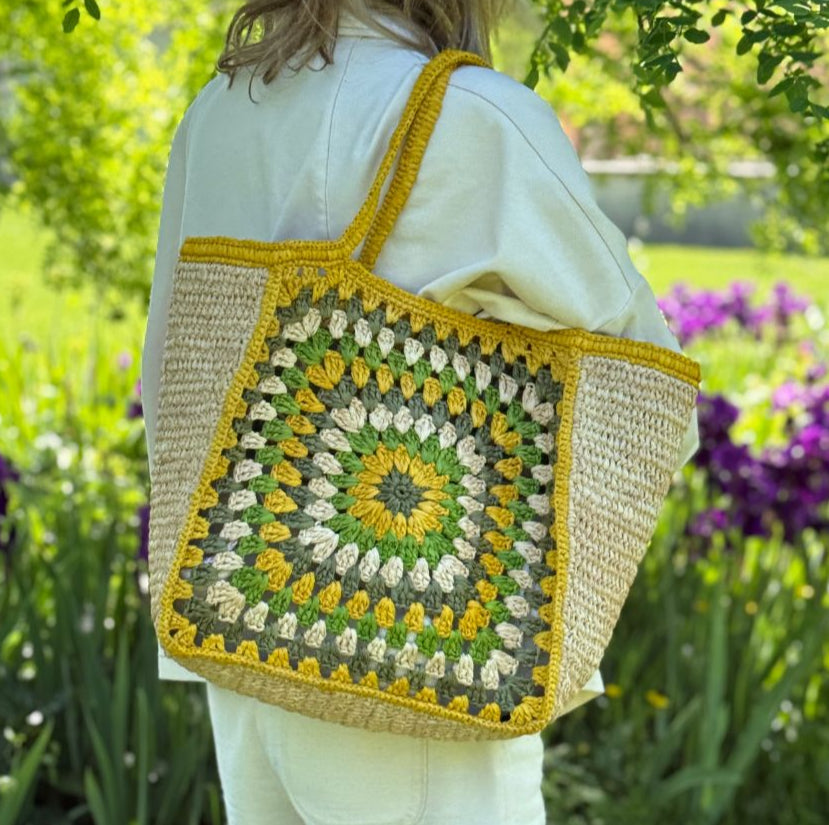 Raffia fanny pack, with gold zip, and adjustable and removable shoulder strap in lightly smoked “tea” and blue raffia. It is hand crocheted and assembled entirely by hand over 4 days in a workshop in Tananarive. The Mia fanny pack is the accessory of summer 2024! Practical and easy to live with, it supports a mobile life with style.