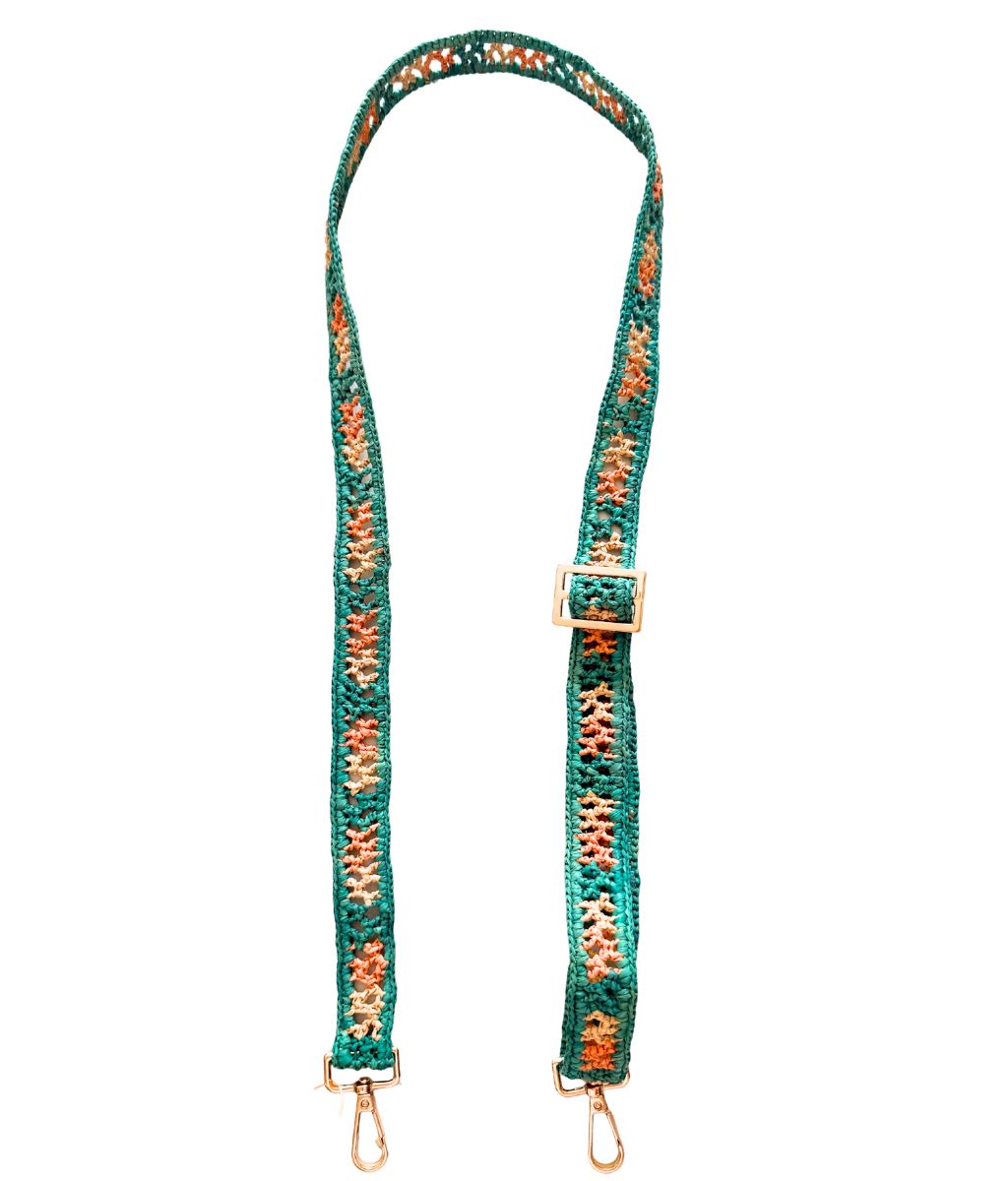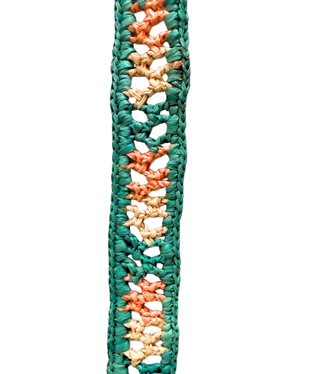 Adjustable and removable raffia shoulder strap - turquoise & coral