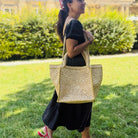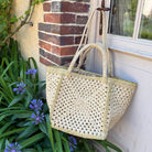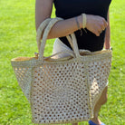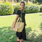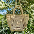 Raffia fanny pack, with gold zip, and adjustable and removable shoulder strap in lightly smoked “tea” and blue raffia. It is hand crocheted and assembled entirely by hand over 4 days in a workshop in Tananarive. The Mia fanny pack is the accessory of summer 2024! Practical and easy to live with, it supports a mobile life with style.